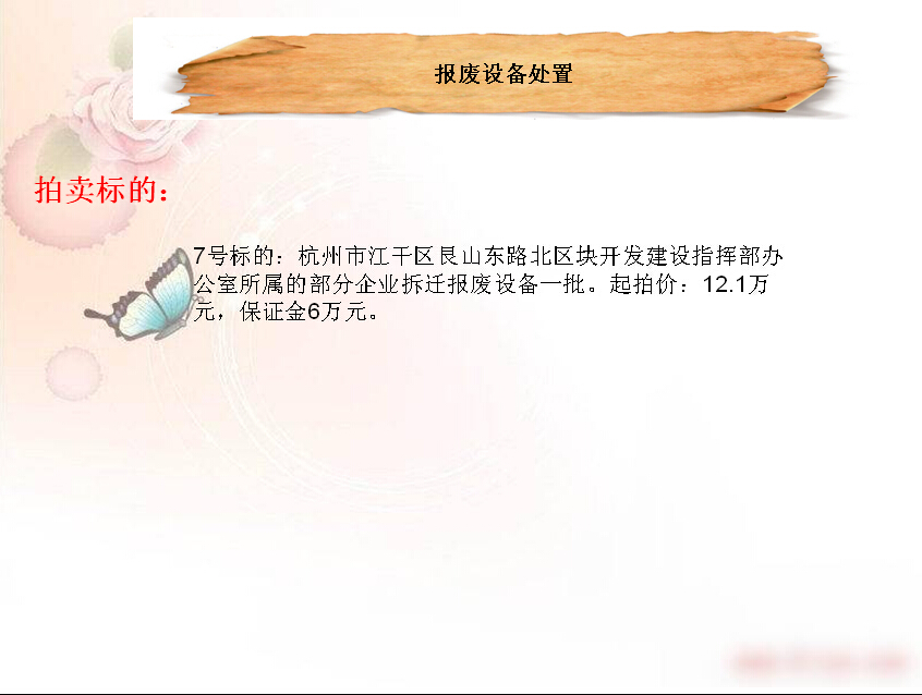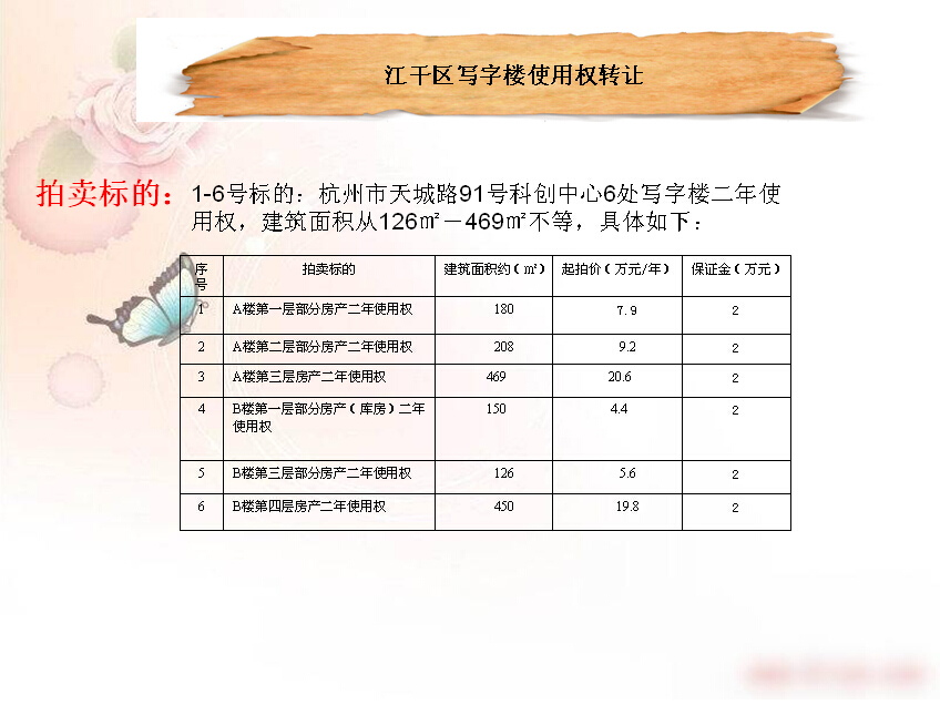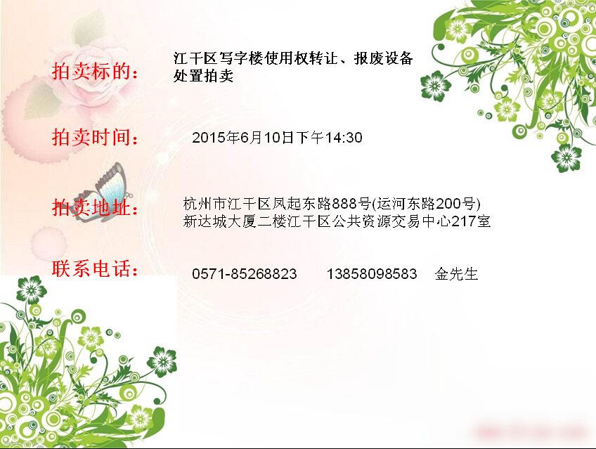 江干區寫字樓使用權轉讓、報廢設備處置拍賣