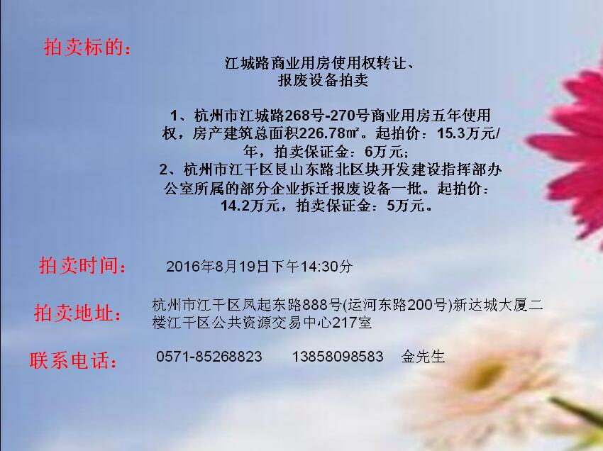 江城路商業(yè)用房使用權(quán)轉(zhuǎn)讓、報廢設(shè)備拍賣