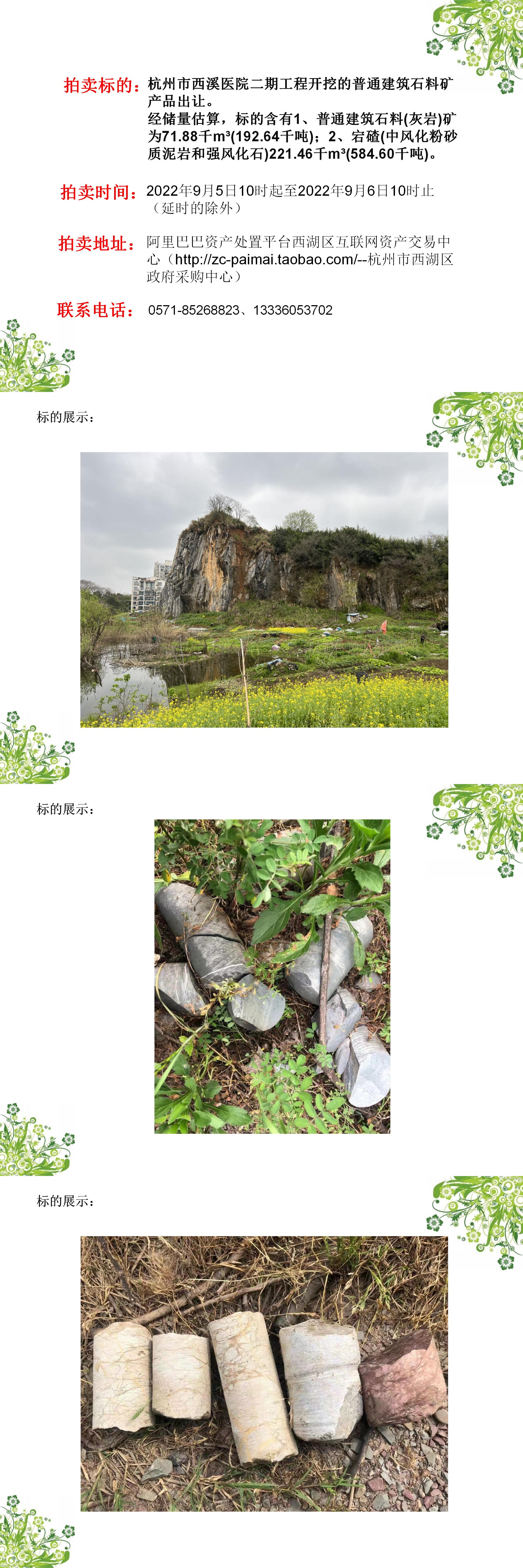 杭州市西溪醫院二期工程開挖的普通建筑石料礦產品出讓