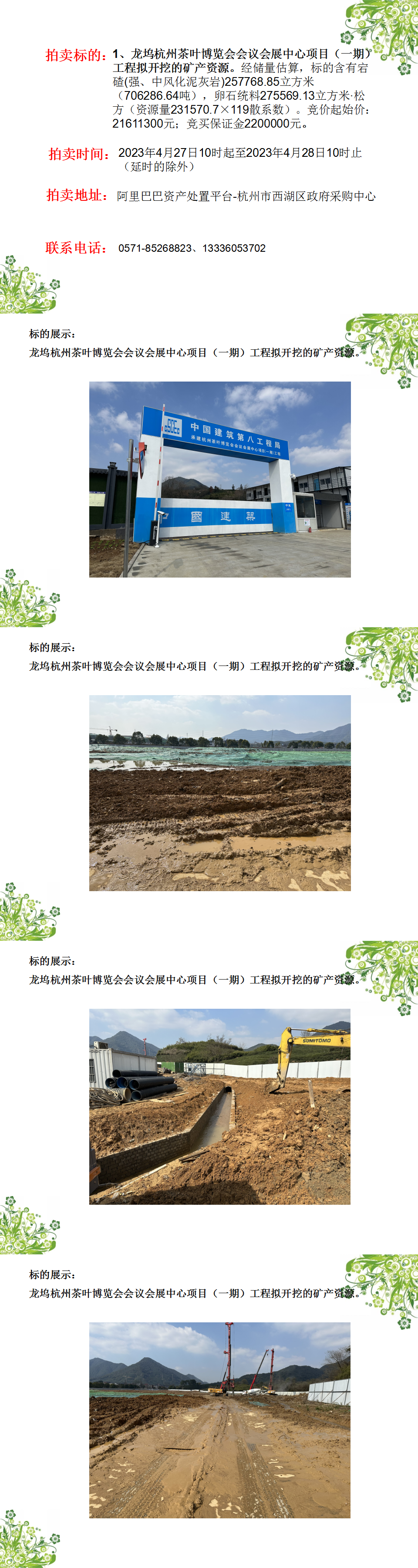 龍塢杭州茶葉博覽會會議會展中心項目(一期)工程擬開挖的礦產資
