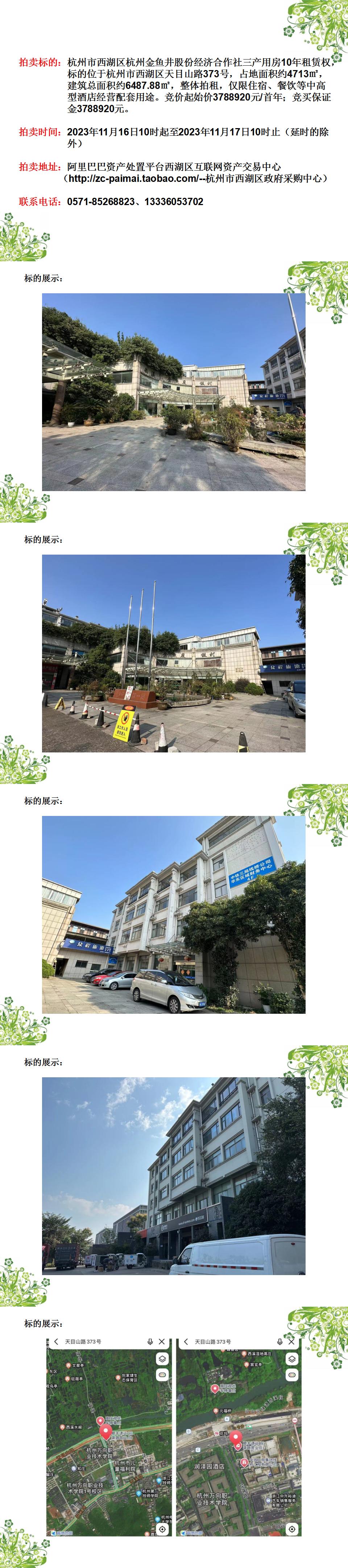 杭州市西湖區杭州金魚井股份經濟合作社三產用房10年租賃權