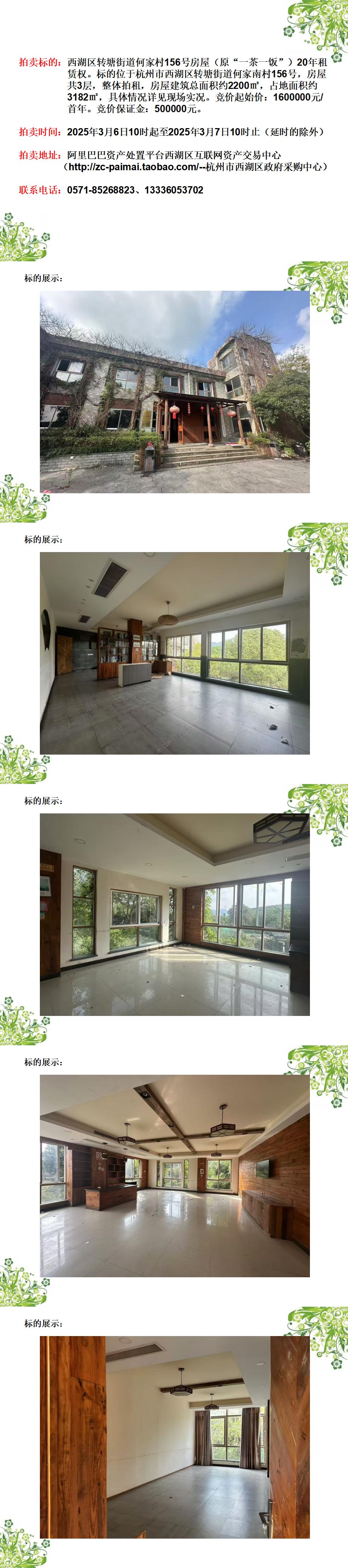 西湖區(qū)轉(zhuǎn)塘街道何家村156號(hào)房屋(原“一茶一飯”)20年租賃權(quán)