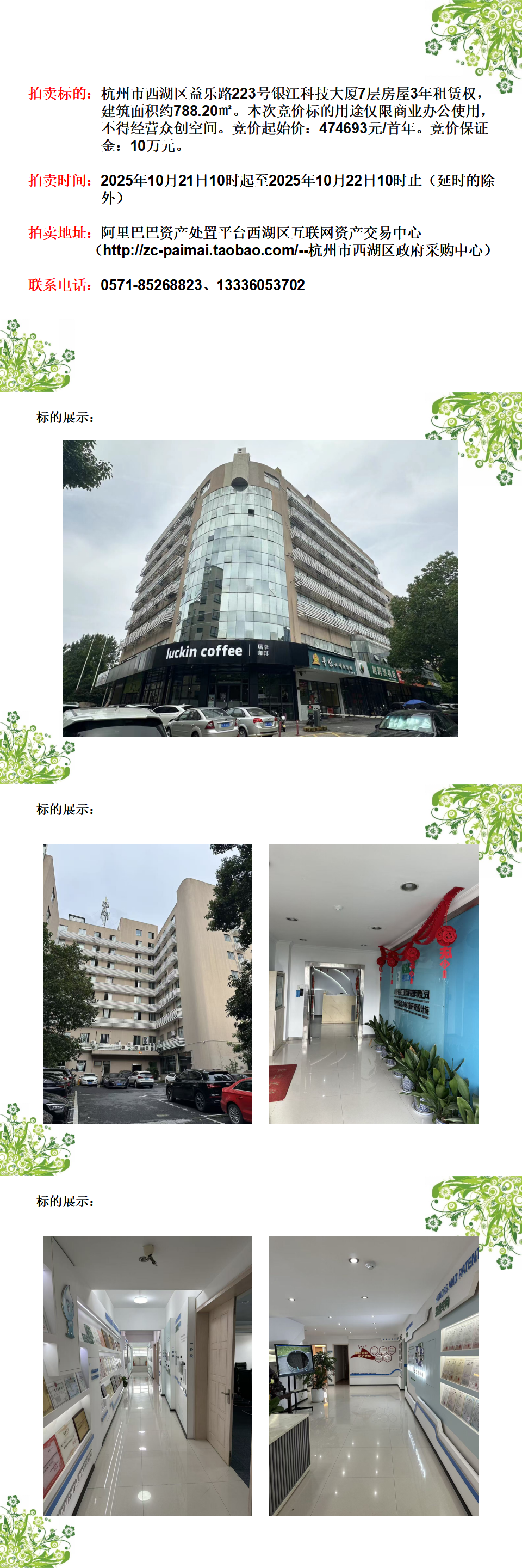 杭州市西湖區(qū)益樂路223號銀江科技大廈7層房屋3年租賃權(quán)