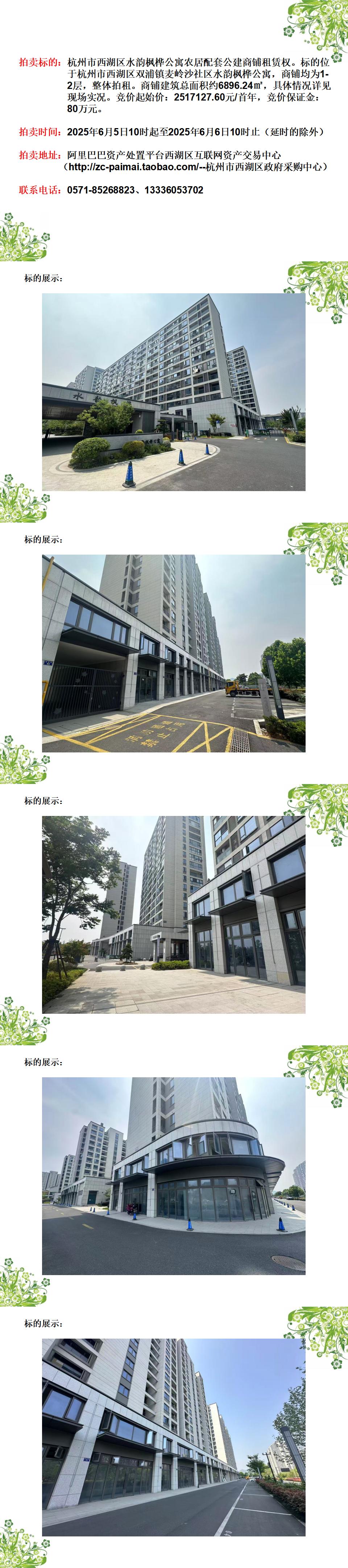 杭州市西湖區水韻楓樺公寓農居配套公建商鋪租賃權